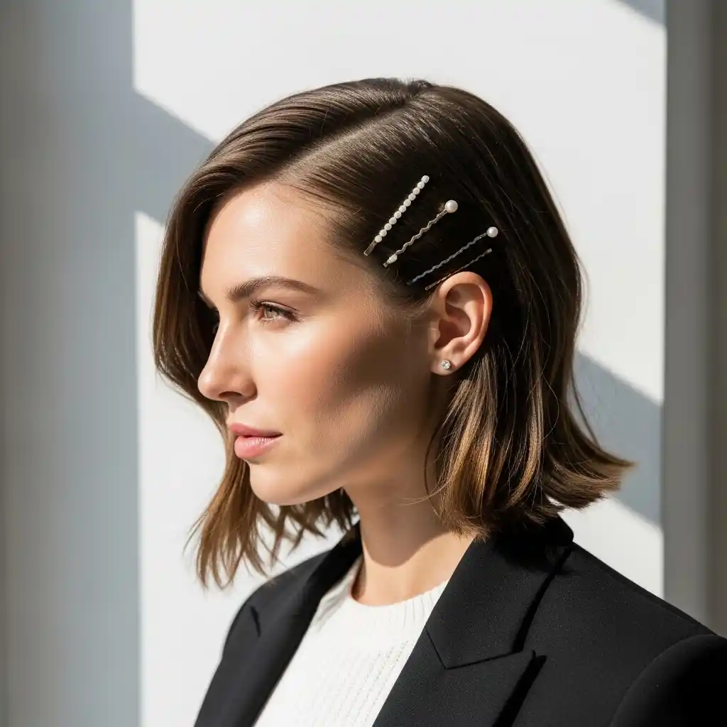 In a few instances, keeping it simple is the best. Brush hair to the side and secure with decorative pins or bobby pins. This is a nice look for short hair or bobs. Crisscrossing bobby pins adds security and visual interest. Choose clips that are appropriate for your style, from sleek metal to bold designs.