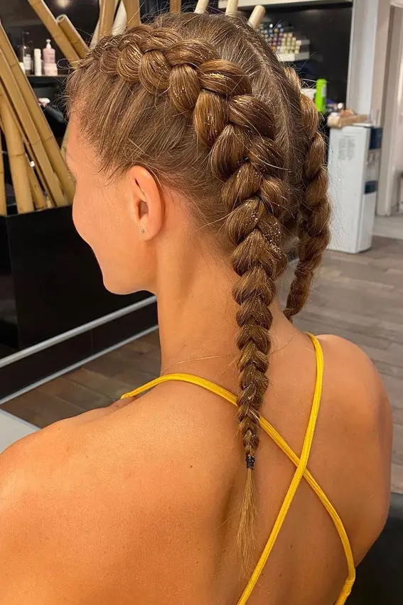 Inside-out braids, also known as Dutch braids, create a three-dimensional, raised effect that looks more difficult than it is to learn. Dutch braids are the opposite of French braids in that the strands cross underneath the middle strand rather than over.@oppositestudio.rs Start with two pieces and cross over on each side, making symmetrical braids. These last well during sports and work for any school setting. The secret to even tension throughout—too tight feels uncomfortable, too loose frizzes.