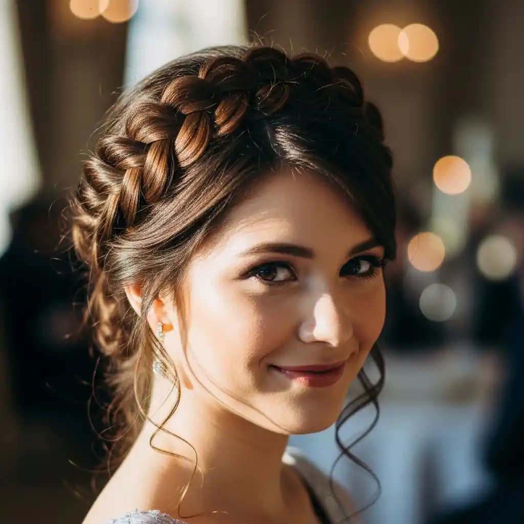 The twisted crown is a classy updo for formal school events. Take sections from either side of your head, twist them backward, and pin them together, repeating until all the hair is contained in the crown. This design keeps hair secure but looks elegant for award events or formal presentations.
