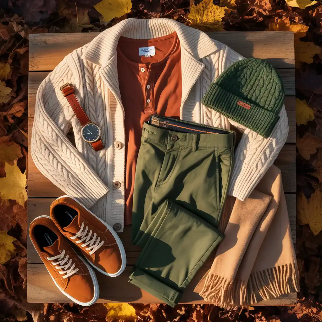 Mix a color palette of earthy, natural tones. Try rust shirts and olive chinos and brown suede loafers, or tan shirts and sage slacks and cognac leather loafers. Earth tones pair naturally well together and have a natural, earthy appearance. The tones complement any skin tone and are ideal for autumn but acceptable all year. Add a touch of nature by sporting a leather cuff or wood-bead accessories.