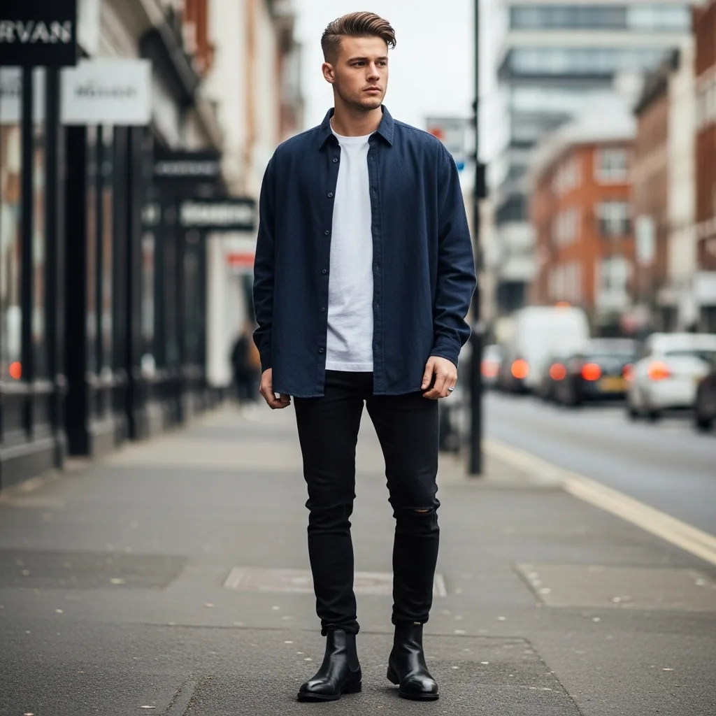 Slip into an oversized casual shirt as an open jacket or skinny overshirt. Pair with a fitted crew-neck tee, slim black trousers, and Chelsea boots. Layering adds depth to simple outfits and works well with thicker cotton tops or chambray. Wear shirts one size up, with the shoulders falling down slightly for the perfect oversized fit. Employ deep coloration or subtle prints on the outer top to preserve the overall style.