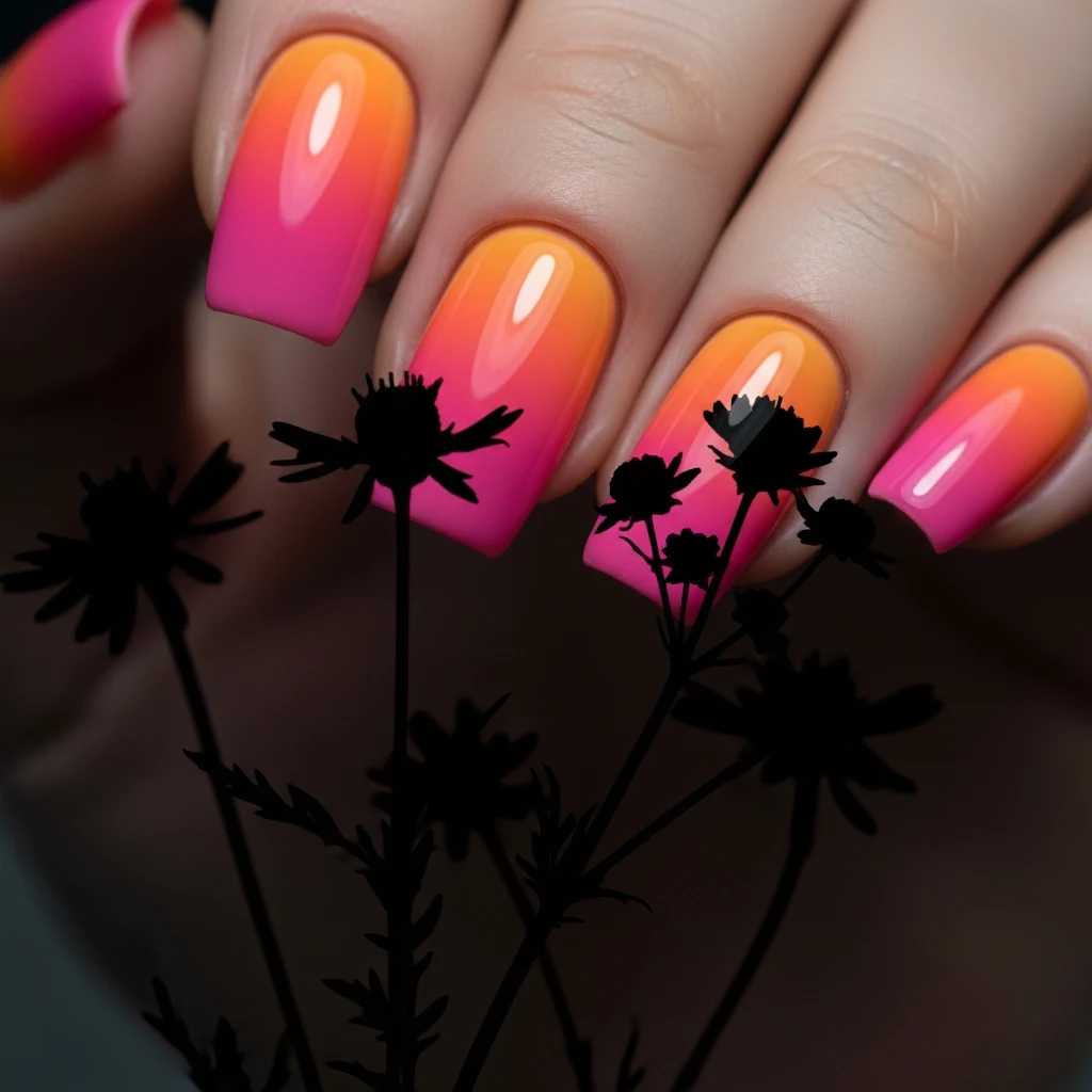 Apply warm gradient backgrounds in orange or pink. Add dark silhouettes of wildflowers to this background. This striking background is ideal for the evening.