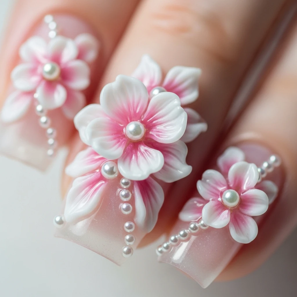 Apply acrylic paint to create three-dimensional flower petals or simply add 3D nail accessories. This is a skillful technique that provides wonderful textured effects.