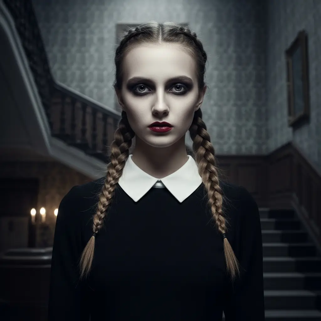 This goth queen from a popular Netflix series is still really popular. All one needs is a black dress with a white collar, braided pigtails, and a deadpan expression. Dark makeup will add to the effect.