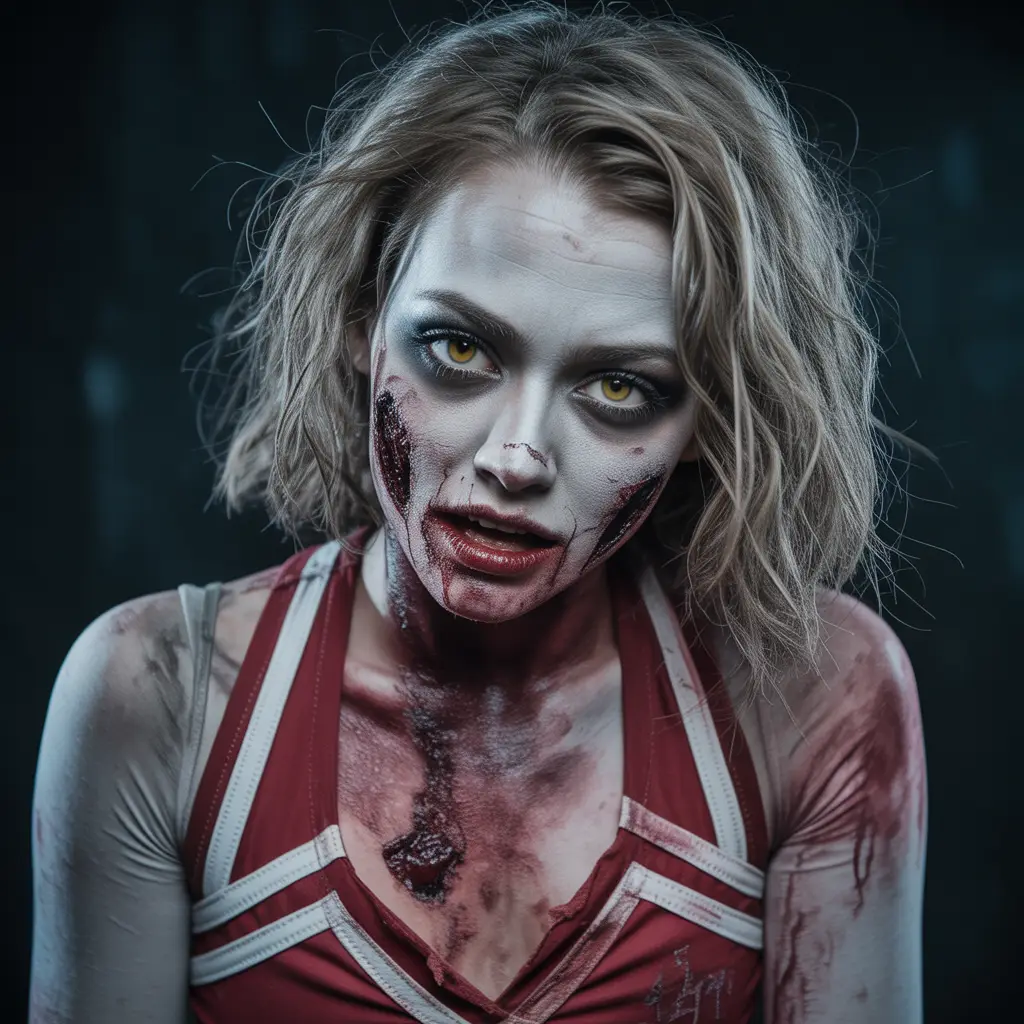 Mix school spirit with a spooky atmosphere by donning your cheer uniform or making one, adding in pretty realistic zombie makeup and fake blood with torn fabric details.