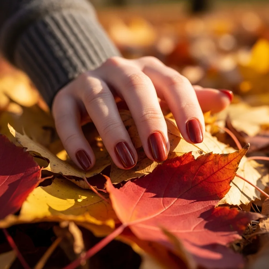 Bold and earthy, rust embodies the warmth of autumn leaves. This orange-brown hybrid is perfect for making a statement while still feeling seasonally appropriate. Rust looks particularly stunning on medium to long nails and pairs beautifully with denim and leather accessories.