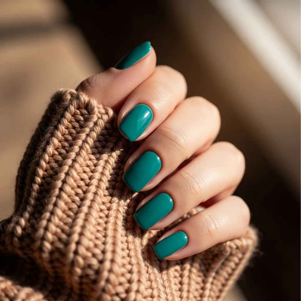 While unconventional, teal brings a refreshing pop of color to traditional fall palettes. This blue-green hybrid works surprisingly well with autumn wardrobes and adds personality to your look. Teal looks especially vibrant on medium-length nails and pairs beautifully with silver or turquoise jewelry.