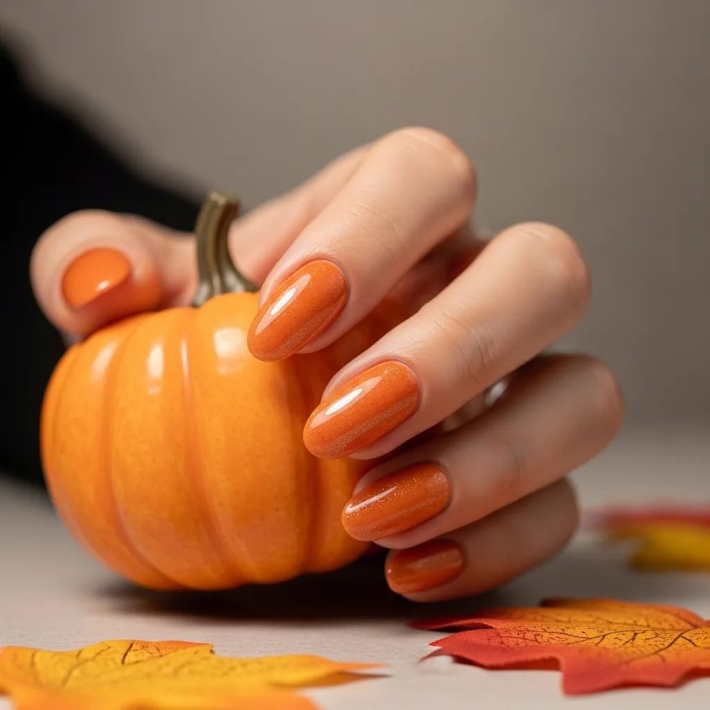 Embrace the season fully with a true pumpkin spice orange. This warm, spicy shade is playful yet sophisticated and captures the essence of fall festivities. Pumpkin spice looks particularly festive with added glitter top coats or simple nail art featuring fall motifs.