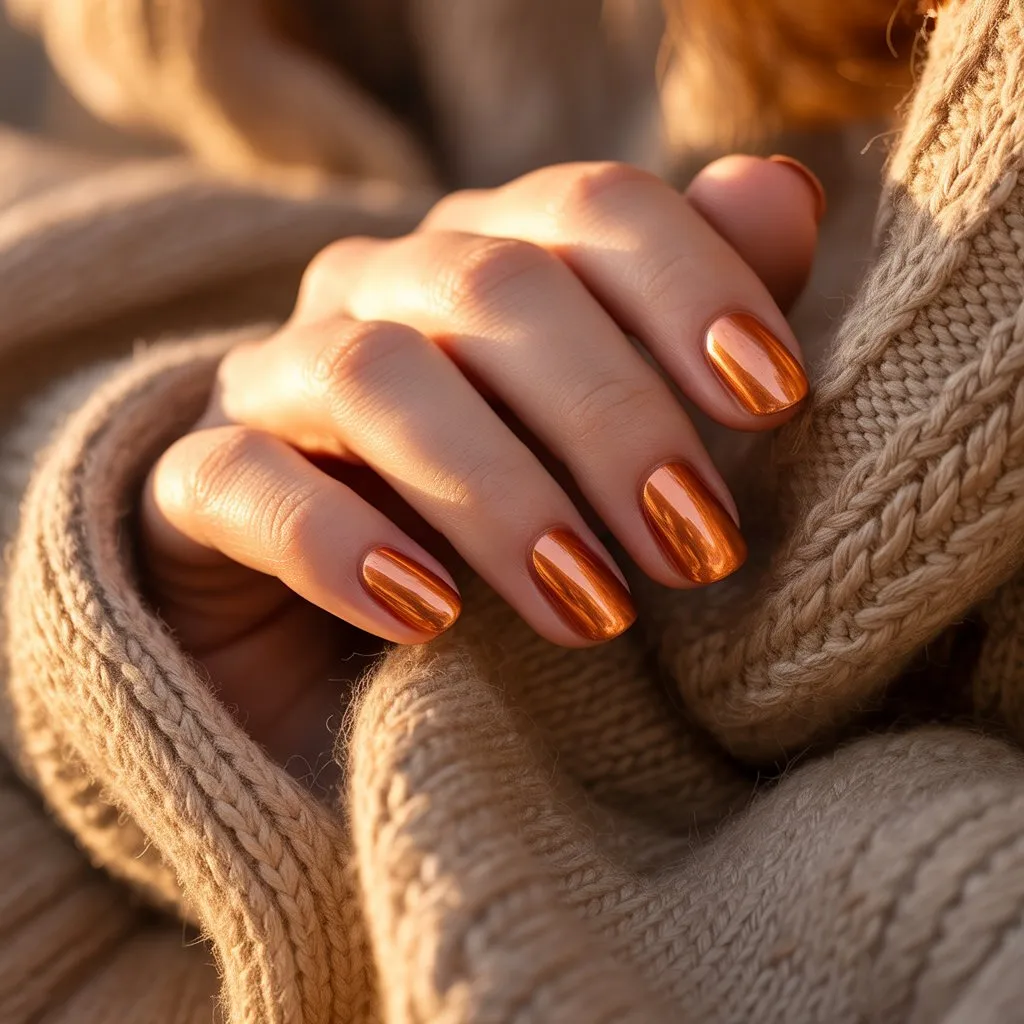 Metallic and warm, copper brings shimmer and sophistication to fall manicures. This shade catches the light beautifully and adds glamour to any occasion. Copper works well as an accent nail when paired with neutral tones or looks stunning when worn on all ten fingers for maximum impact.
