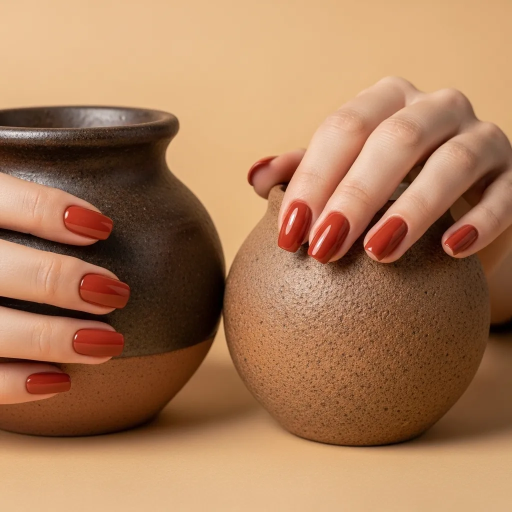 Inspired by autumn sunsets and clay pottery, terracotta brings warmth and earthiness to your manicure. This reddish-brown hue has a natural, organic feel that’s both modern and timeless. Terracotta looks especially beautiful on medium to long nails and pairs wonderfully with bohemian-inspired fashion.