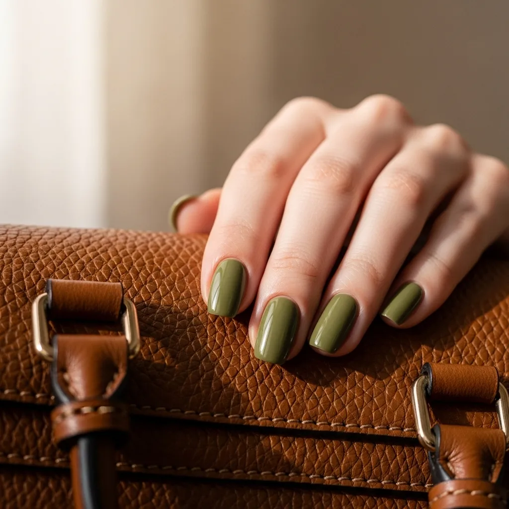 Muted and earthy, olive green is the perfect understated fall shade. This versatile color works beautifully for both casual and professional settings. Olive green pairs particularly well with gold and bronze jewelry, creating a cohesive autumn aesthetic. Consider adding a subtle gold shimmer top coat for special occasions.