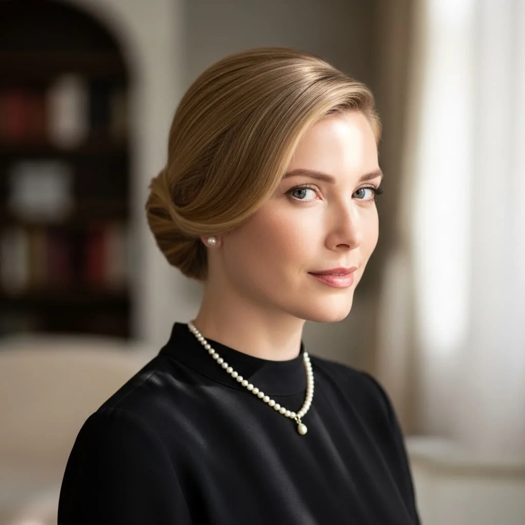 Favored by European aristocracy, the sleek low ponytail is deceptively simple yet incredibly chic. Part hair down the middle or slightly to the side, smooth it back with a boar bristle brush and a small amount of smoothing serum, and secure at the nape with a covered elastic. For an extra luxurious touch, wrap a small section of hair around the elastic to conceal it. This style works beautifully for both casual country weekends and formal evening events.