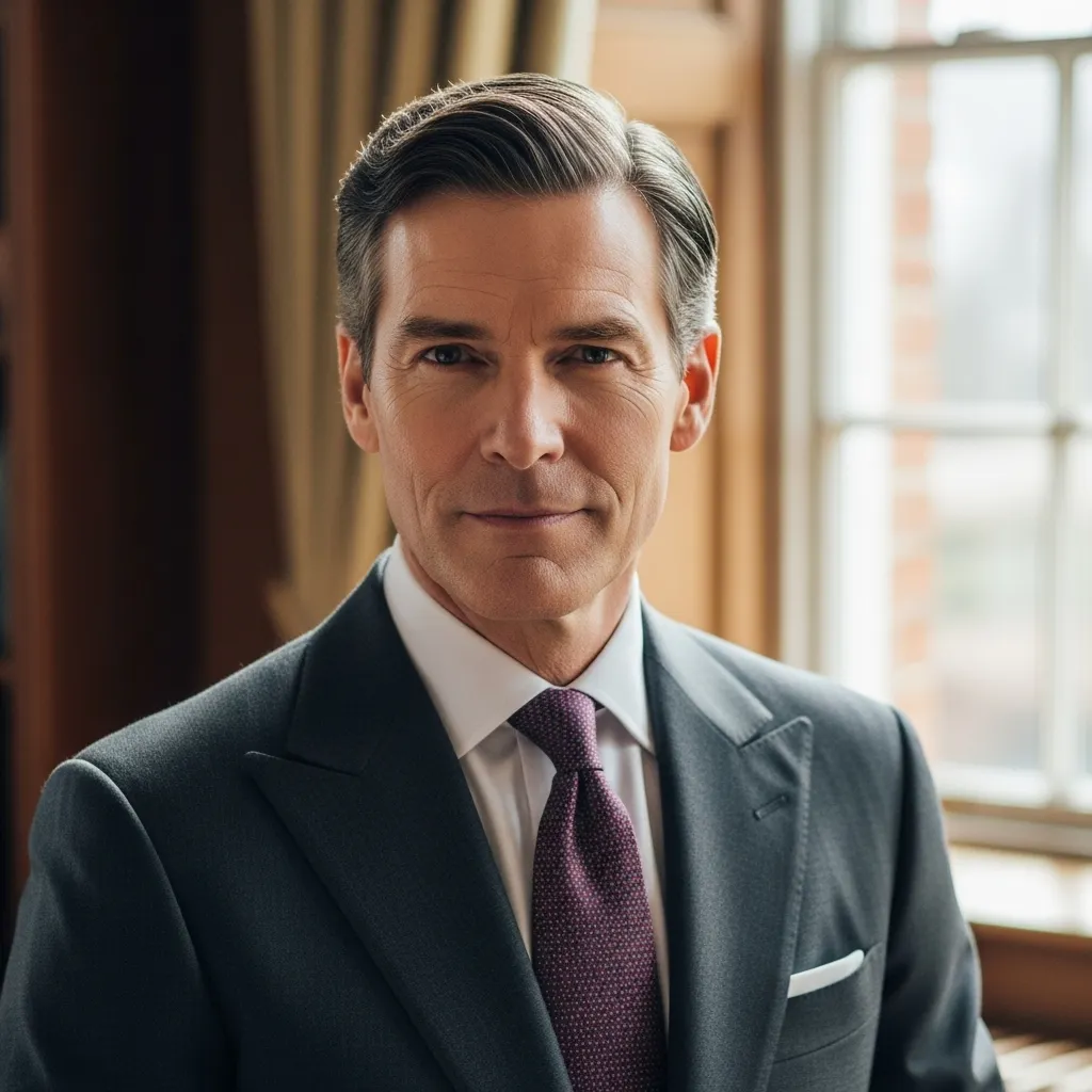 For those who prefer slightly longer hair, this style allows for a casual yet polished look. Hair is cut to about three to four inches on top, then blow-dried to one side with volume at the roots. It’s sophisticated without being stuffy, perfect for creative professionals in old money circles.
