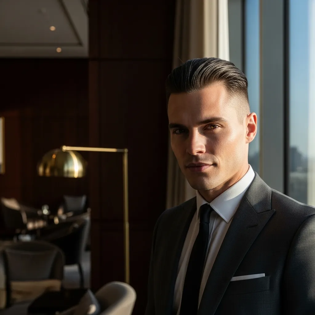 For those who prefer ultra-short hair, the executive buzz cut uses a longer guard (typically #4 or #5) for a refined rather than military appearance. It’s incredibly low-maintenance while projecting confidence and no-nonsense sophistication. This style requires a well-shaped head and suits men comfortable with minimal hair styling.