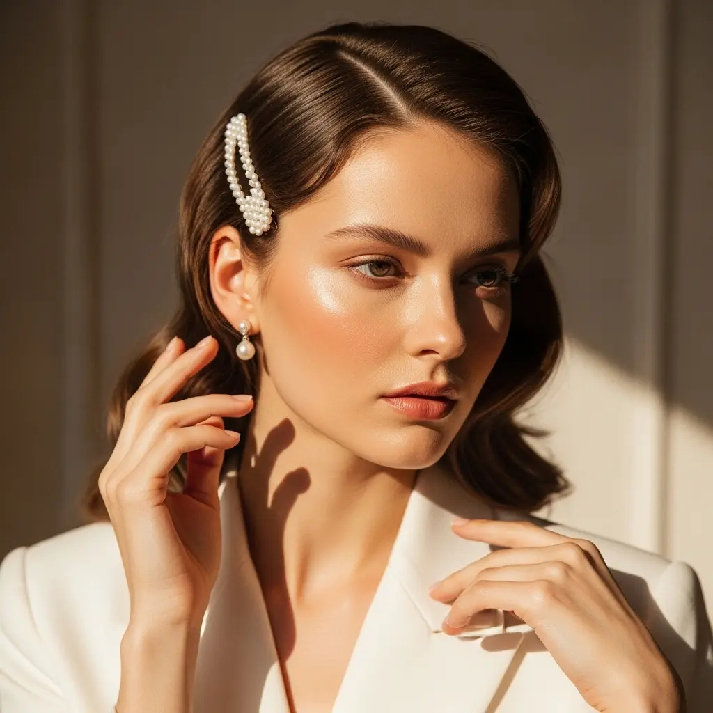 Channel Carolyn Bessette-Kennedy with soft, loose waves adorned with delicate pearl pins. Create waves using a large-barrel curling iron, then brush through gently with a paddle brush to soften. Pin back one side with pearl or tortoiseshell barrettes for an understated, elegant touch. This style perfectly balances polished and relaxed.