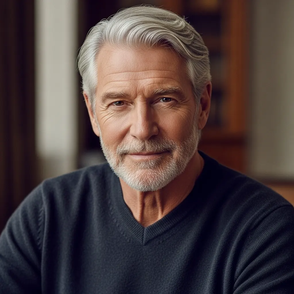 Rather than a specific cut, this celebrates natural gray and silver hair, which embodies old money authenticity. Keep hair impeccably groomed with regular trims, use purple-toning shampoo to prevent yellowing, and maintain healthy shine with quality hair products. Silver hair, worn confidently, is the ultimate status symbol.