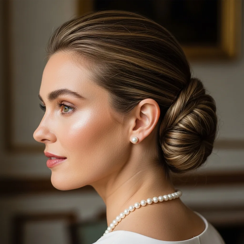 This sophisticated updo embodies elegance at its finest. The low chignon sits at the nape of the neck, smooth and polished without appearing stiff. To achieve this look, start with day-old hair for better grip. Gather hair into a low ponytail, twist it into a rope, and coil it into a bun. Secure with bobby pins that match your hair color, and finish with a light-hold hairspray. The key is making it look effortless—a few soft pieces framing the face add that coveted natural touch.