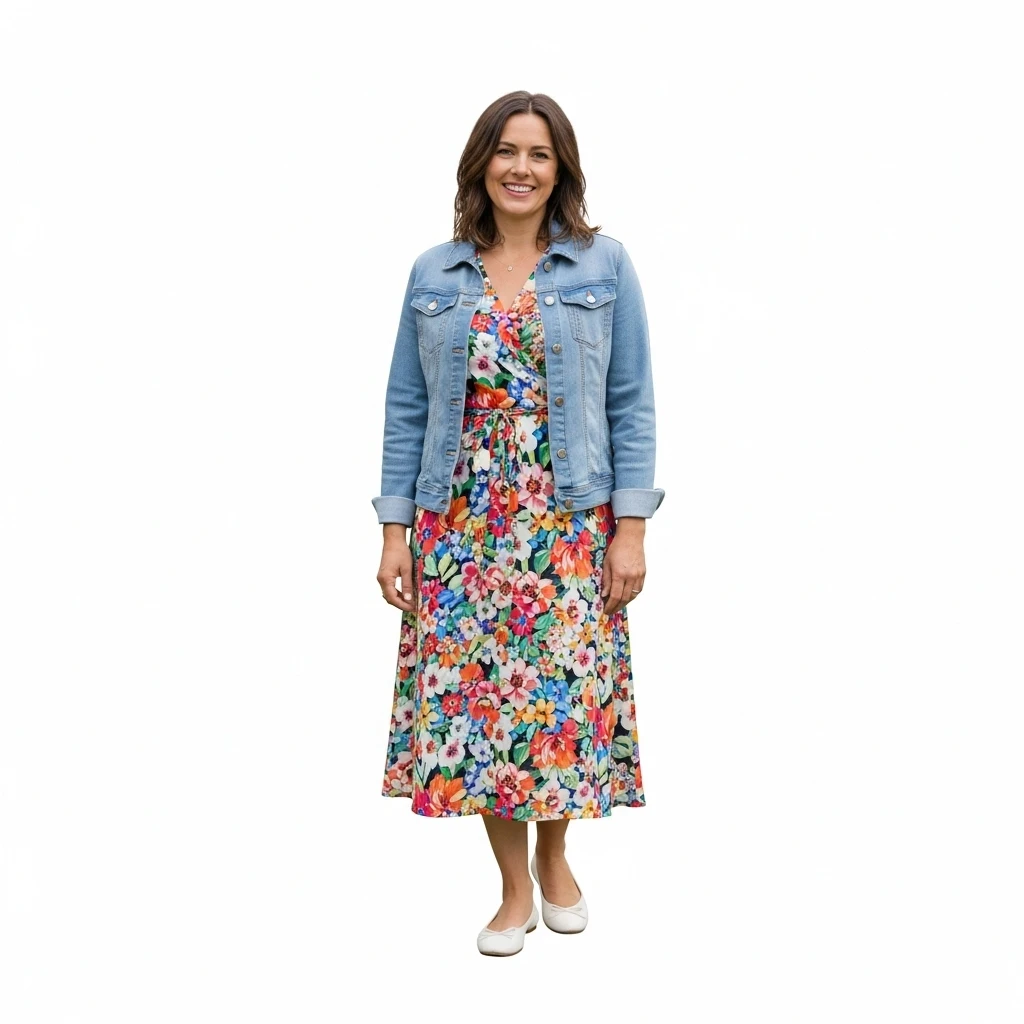 A romantic floral midi dress is a spring staple that never goes out of style. Layer it with a classic denim jacket and add white ballet flats or sneakers for a fresh, youthful vibe. This outfit is perfect for garden parties, outdoor dates, or casual shopping trips. The midi length provides elegance while the floral pattern captures the essence of spring’s renewal. Choose prints with soft pastels or jewel tones, depending on your skin tone and personal preference. Look at this