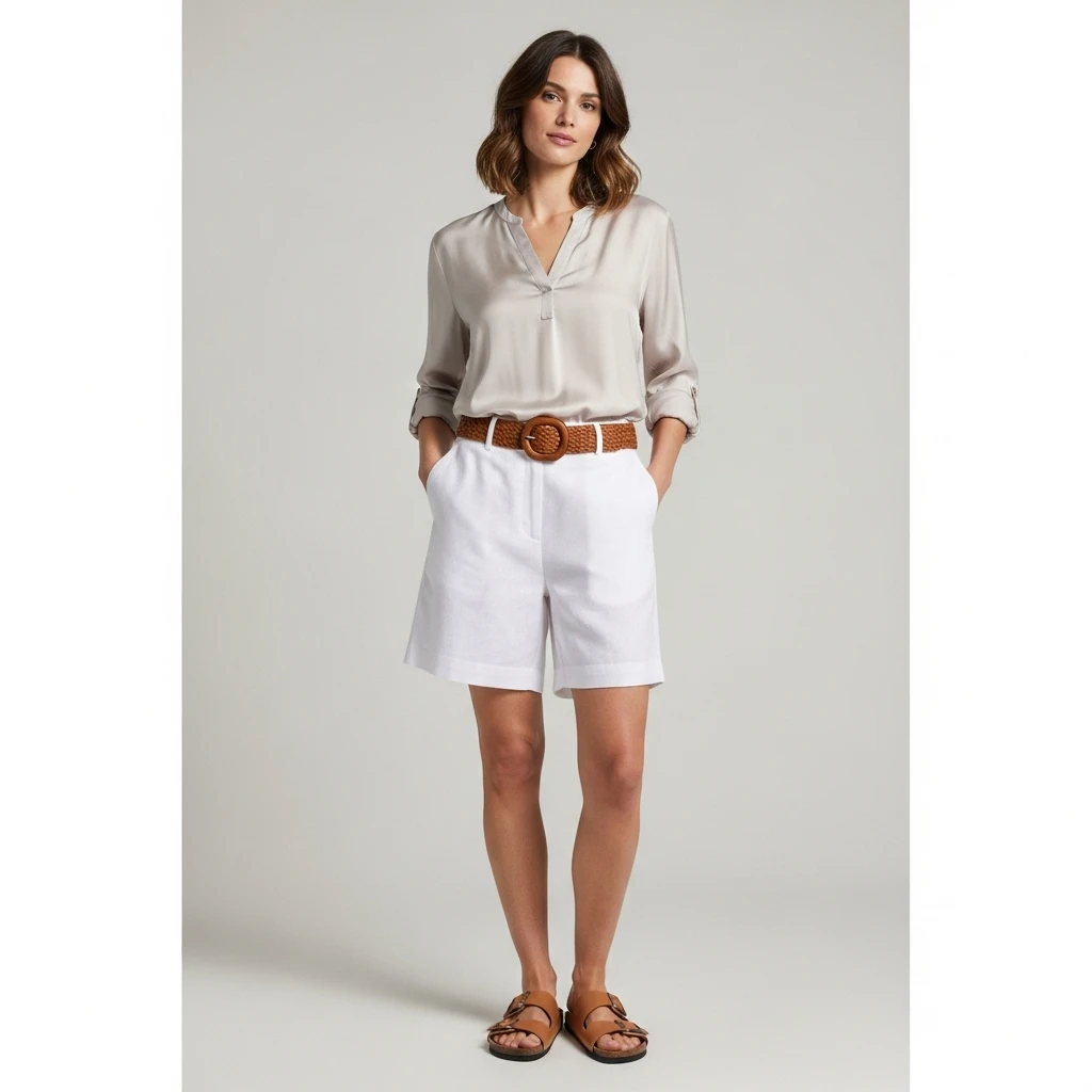 As temperatures rise, transition to linen shorts in neutral tones like khaki or white, paired with a tucked-in silk or linen blouse in pastels or white. Add sandals and a woven belt for a polished casual look. This outfit is perfect for spring weekends, casual dates, or outdoor activities. The tucked-in styling elevates shorts from purely casual to slightly more refined.