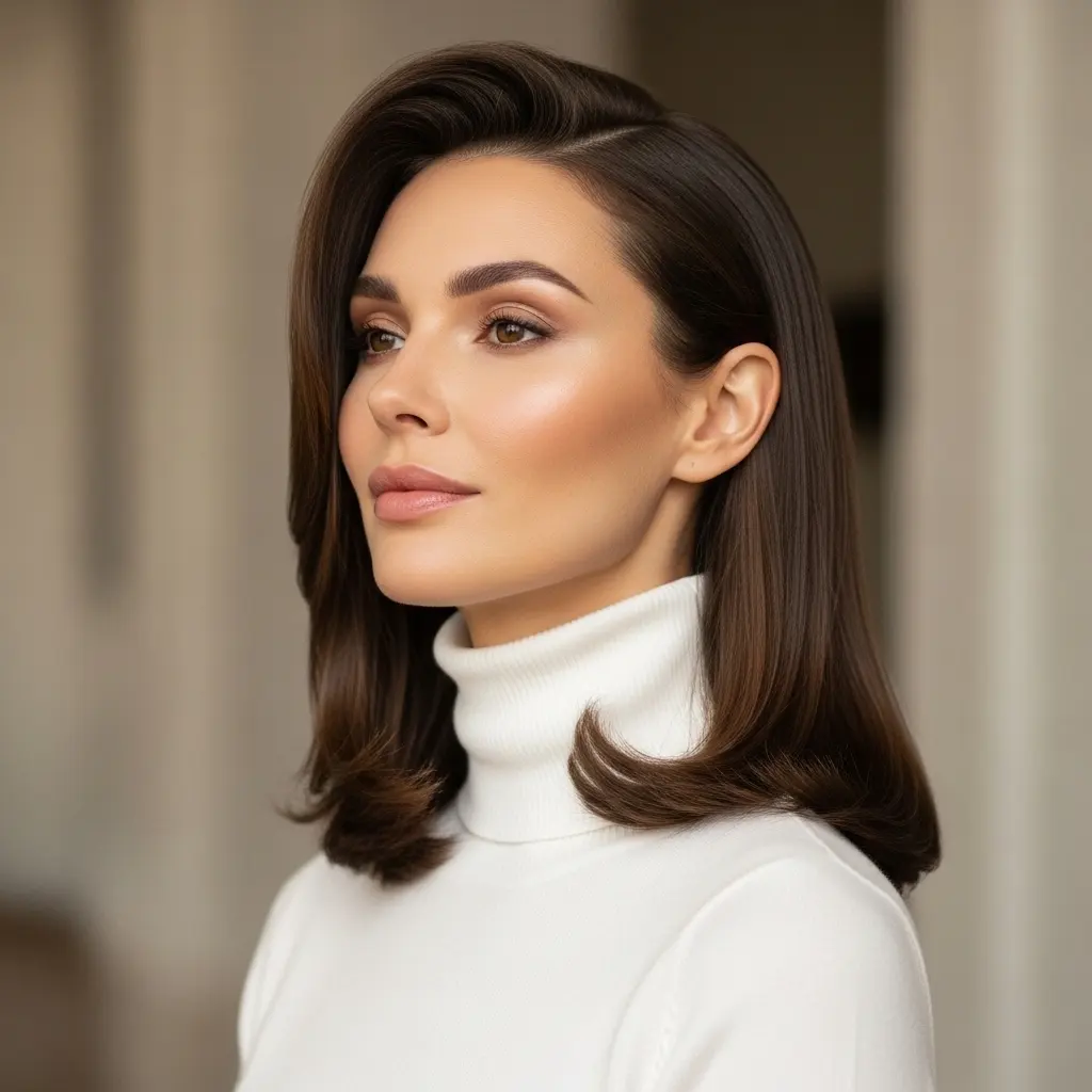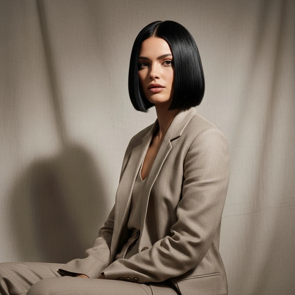 The contrast of a sleek, blunt bob defines the season, with sleek styling serving as the go-to hairstyle for women who prefer minimalism and elegance. This precision cut features hair cut straight across at one uniform length, creating a strong, graphic line that exudes confidence and sophistication.